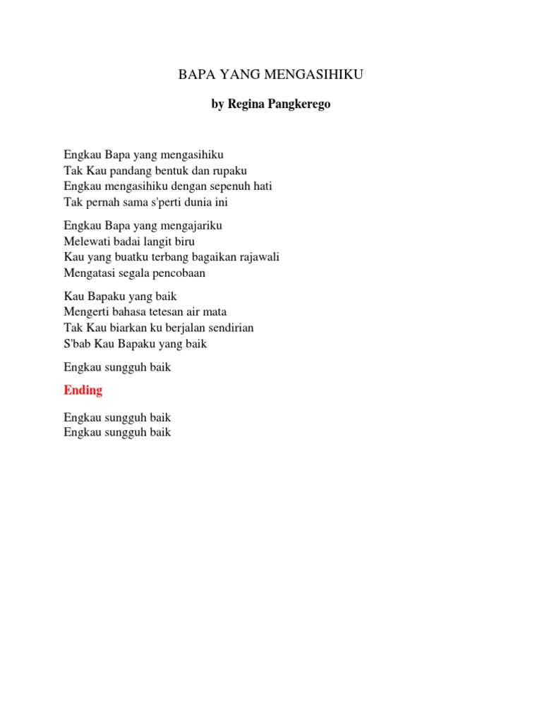 Lirik Lagu Rohani Docx Docx Document from static.fdokumen.com Engkau bapa yang mengasihiku tak kau pandang bentuk dan rupaku engkau mengasihiku dengan sepenuh hati tak pernah sama s'perti dunia ini. C dm bersinarlah bulan purnama g c seindah serta tulus cintanya. Chords for s bab engkau baik yochen amos album voxdeo. Album tersebut diluncurkan pada 2007 dengan mengusung delapan lagu. chorus d a/c# kau beri yang kupinta. 139 views, added to favorites 4 times. Bapa yang mengasihi ku (lyric). C f engkau bapa yang mengajariku g c melewati badai langit biru c f kau yang buatku terbang bagaikan rajawali.