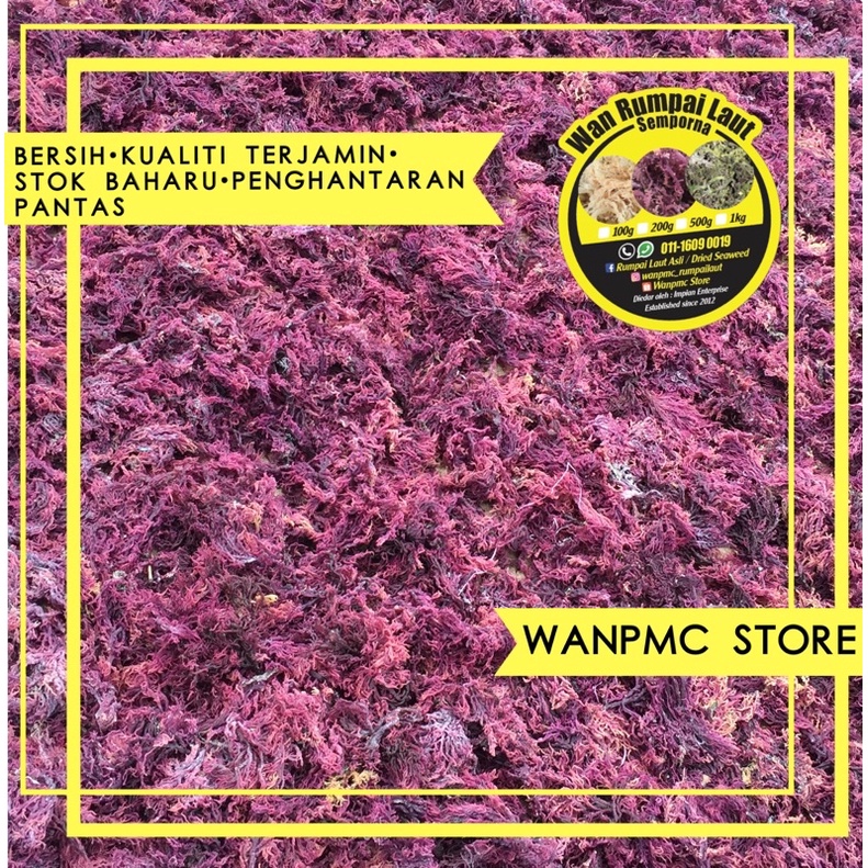 Rumpai laut untuk kesihatan diri. Hubungi melalui telefon/ sms atau contact. Harga diatas termasuk harga pos ke seluruh malaysia. Rumpai laut jenis ini mempunyai jumlah kepekatan kolagen yang tinggi dan juga dikenali sebagai pure marine collagen. Rumpai laut ungu lebih banyak khasiat berbanding rumpai laut kuning kerana rumpai laut ungu diproses secara semulajadi.